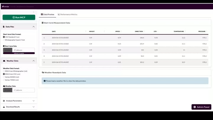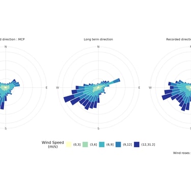 At the core of our methodology is emcipy, our proprietary MCP algorithm. It processes long-term correlations at a 10-minute resolution, synchronizing all critical variables (Wind Speed, Direction, Temperature, Pressure, and wind speed standar deviation). This allows us to deliver a highly realistic, time-domain model of your future farm's production.